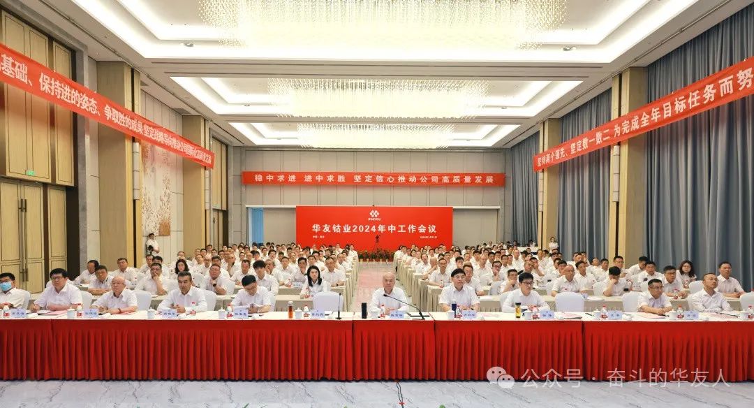 7月27日,华友钴业2024年中会议在桐乡总部召开。目的是总结、检讨上半年的成绩与不足,分析研讨新的环境形势,理清工作思路,明确工作目标,部署重点任务,进一步凝聚奋进力量,扛起使命担当,坚定不移推动公司转型升级和高质量发展!