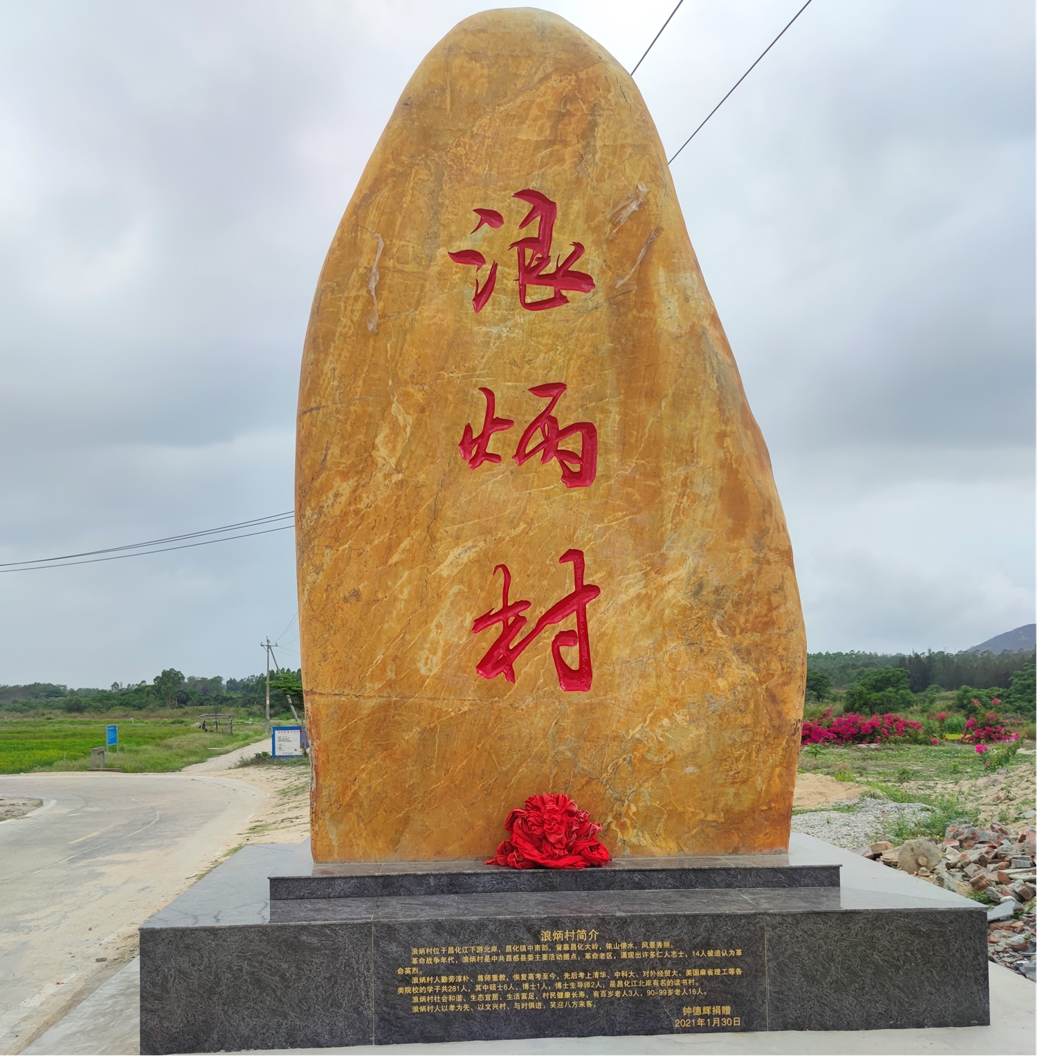 浪炳村的入村路口没有醒目的引路村牌,建立村牌也成了浪炳村人的一桩心事。海南河道公司急群众之所急,想群众之所想,无偿捐赠河砂,帮助浪炳村建立了村牌。崭新的村牌,既方便了来往村民,也提升了村庄形象,成了当地一道亮丽的风景线。